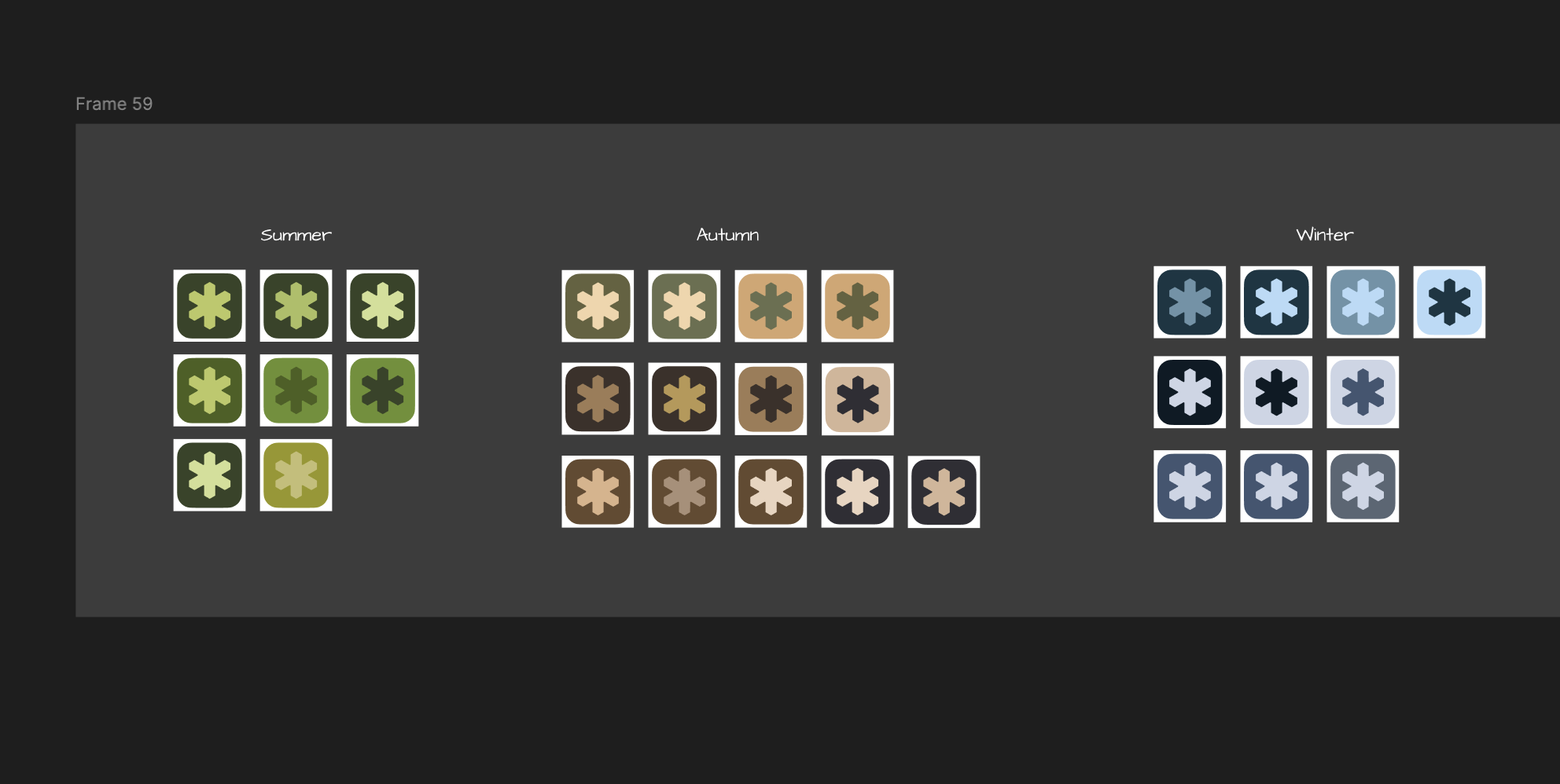 Among other things I'm exploring the concept of seasonality.Seasons change drastically our experience of nature and this should be reflected in the content of the application: users will get information and recommendations relevant to the current season. But what if this seasonality was also reflected in the appearance of the app?