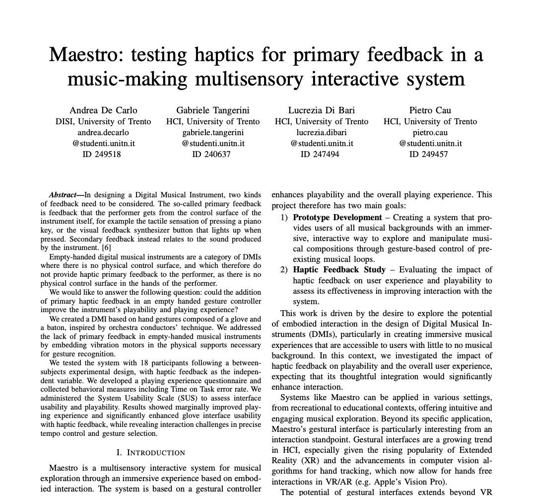 Maestro is a multisensory interactive system for musical exploration that combines visual, auditory, and haptic feedback to create an immersive "music-making" experience.